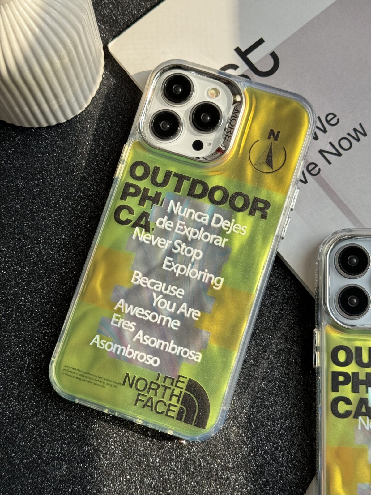 قاب موبایل آیفون نورث فیس فسفری شبرنگ