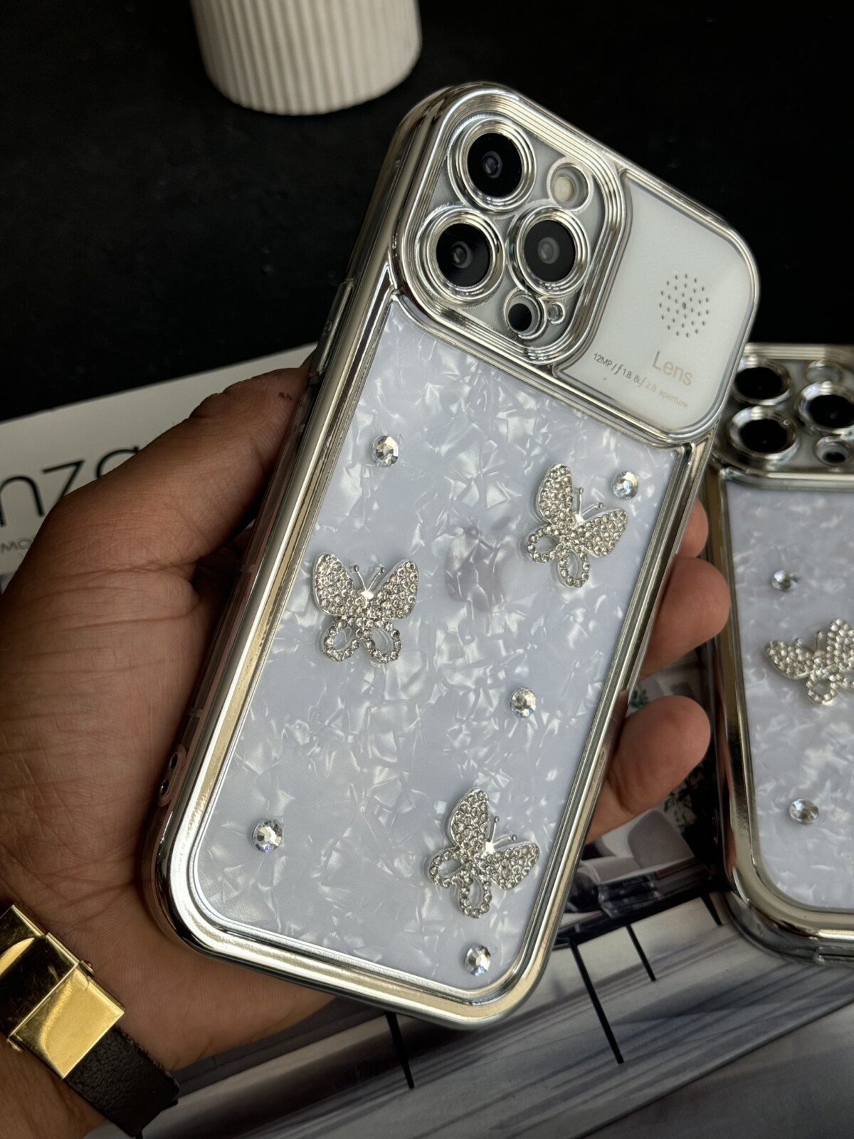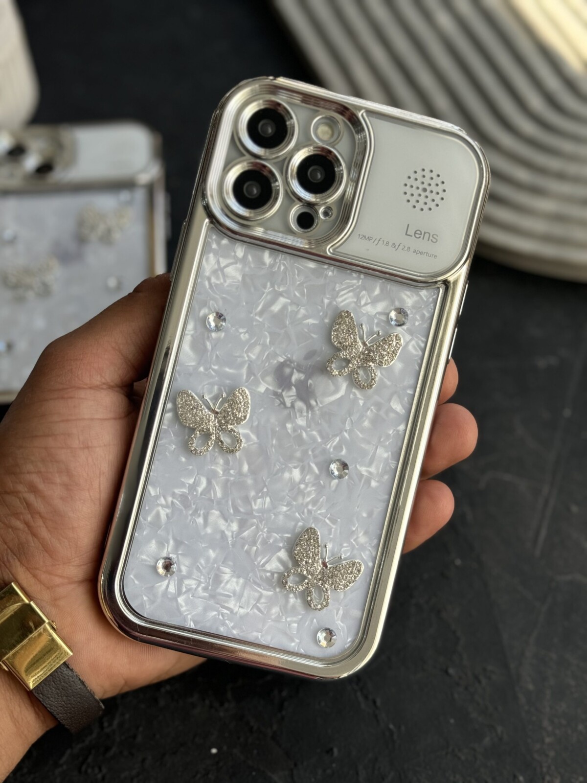 قاب موبایل آیفون پروانه نگین دار عطری