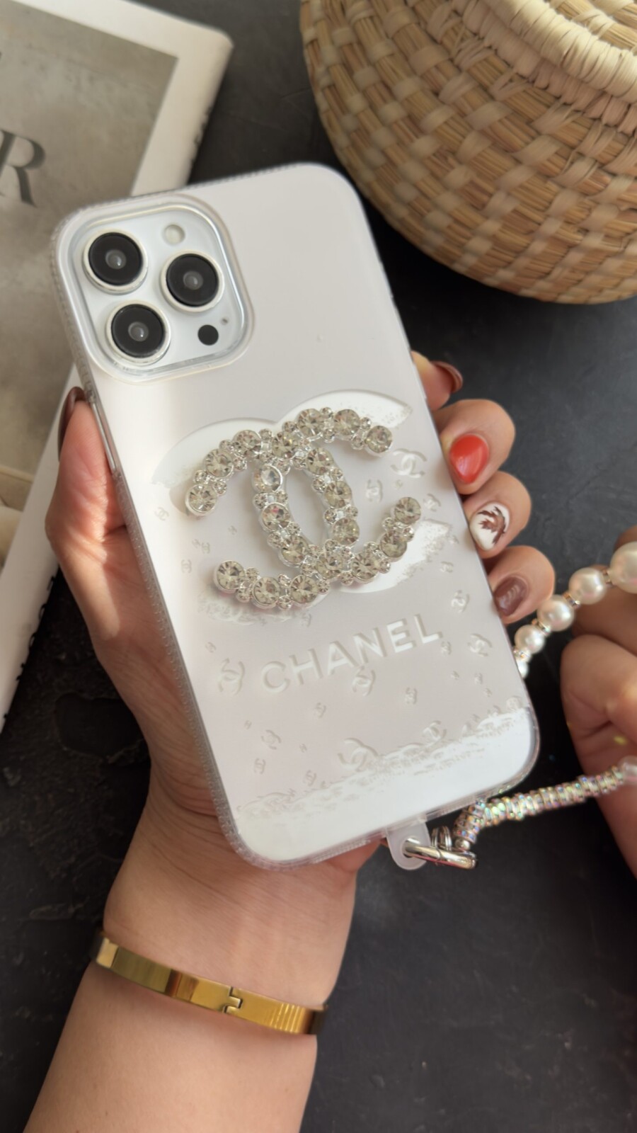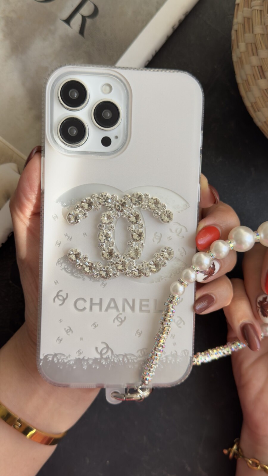 یکی از ویژگیهای خاص این محصول، بندست مروارید همراه آن است که علاوه بر کاربردی بودن (برای نگهداری راحتتر گوشی)، جلوهای زنانه و جذاب به استایل شما میدهد. مرواریدهای درخشان در کنار قطعات براق، زیبایی این ست را دوچندان میکنند و آن را به یک اکسسوری کامل تبدیل کردهاند.