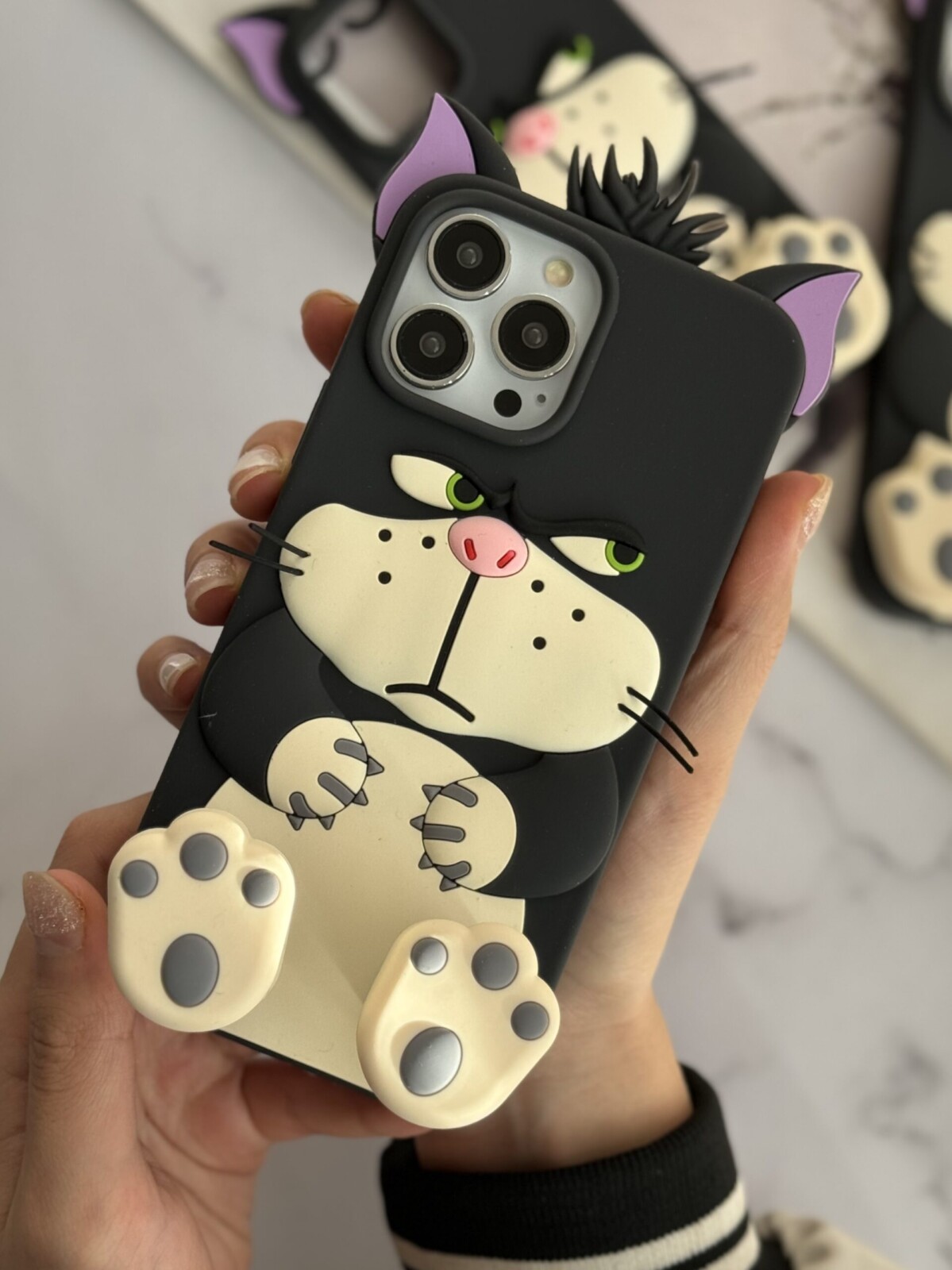 قاب موبایل آیفون گربه سیبیلو شرور پا استندشو