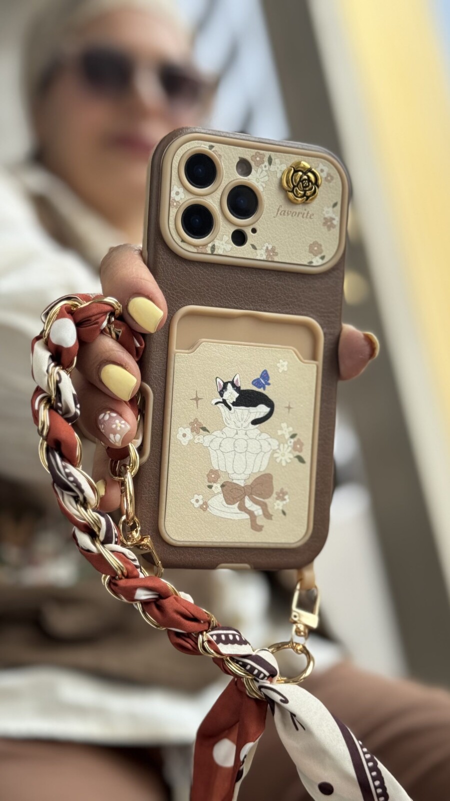 قاب موبایل ( آیفون ) گربه فلوریتا جاکارتی + بند اسکارف