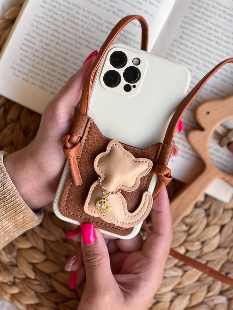 قاب موبایل آیفون گربه مینیمال جاکارتی دار محافظ لنزدار