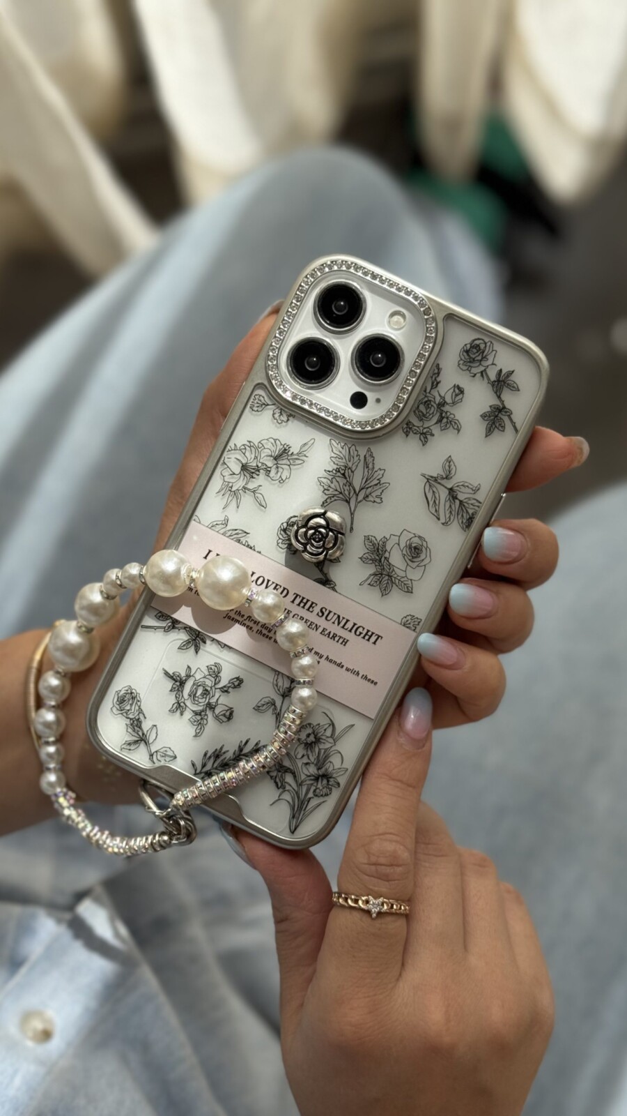 قاب موبایل آیفون گل فلاورز سان لایت + بندست