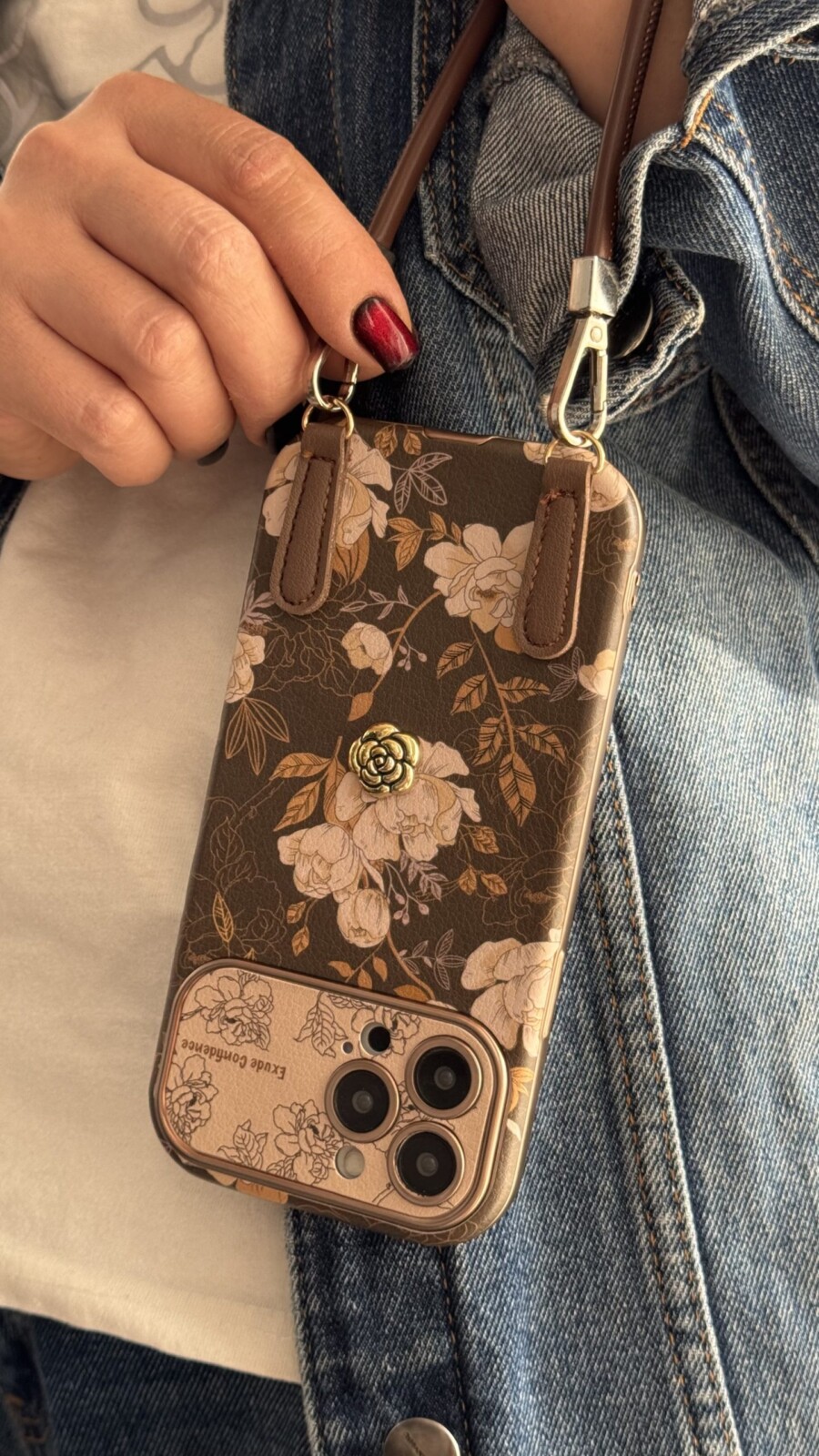 ⭐ معرفی قاب موبایل آیفون گل فلاور کرم فندقی + بند چرمی ست
