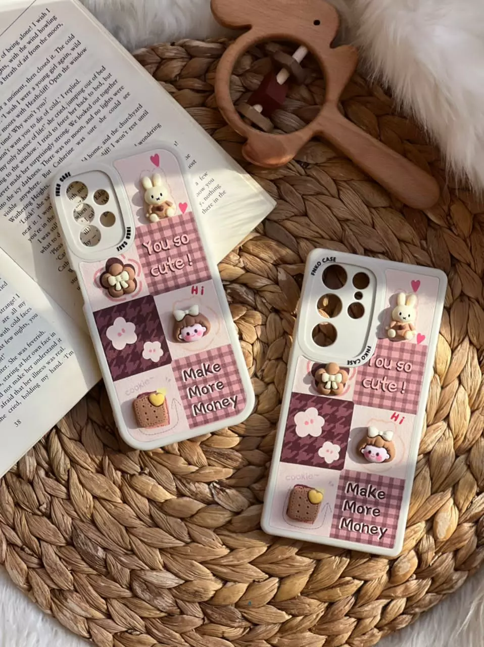 قاب موبایل سامسونگ دختر و بیسکوئیت برجسته قهوه ای کرم محافظ لنزدار