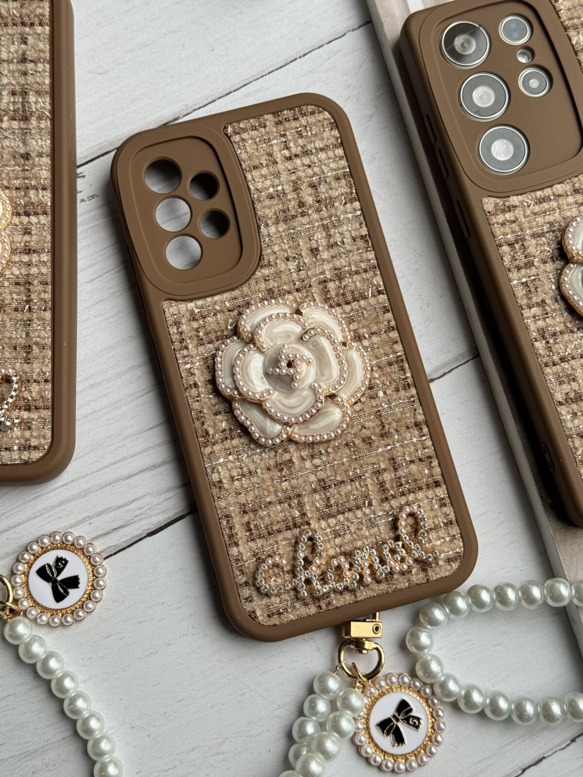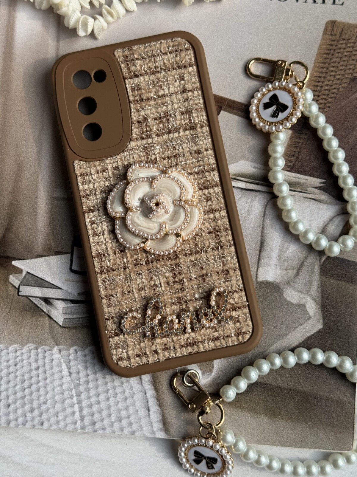 قاب موبایل سامسونگ شنل گل حصیری + بندست