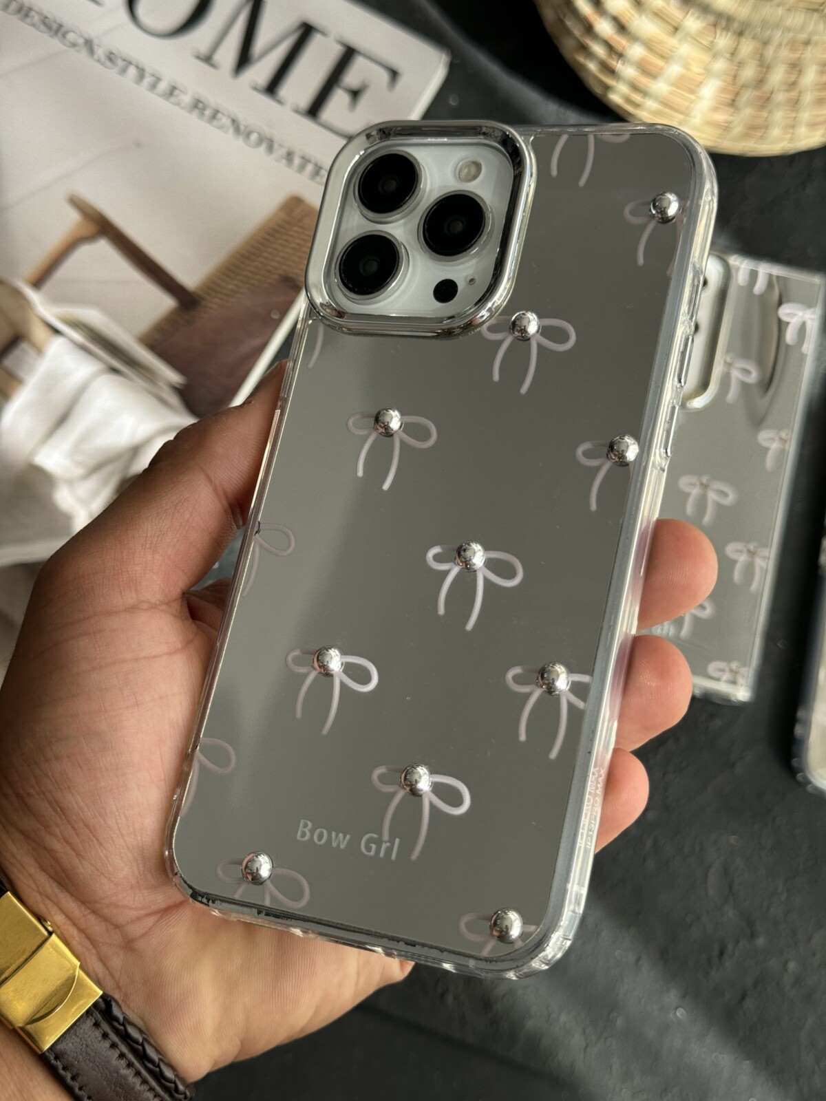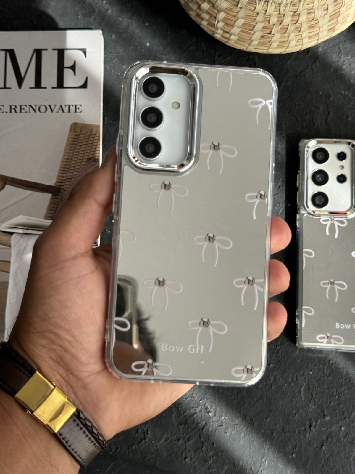 قاب موبایل سامسونگ پاپیون آیینه ای نگین دار