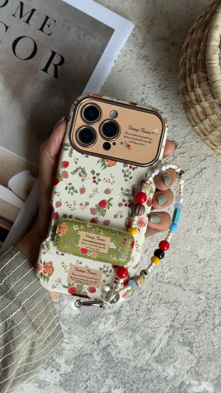 قاب موبایل موبایل آیفون استرابری گاردن + بند و استند ست
