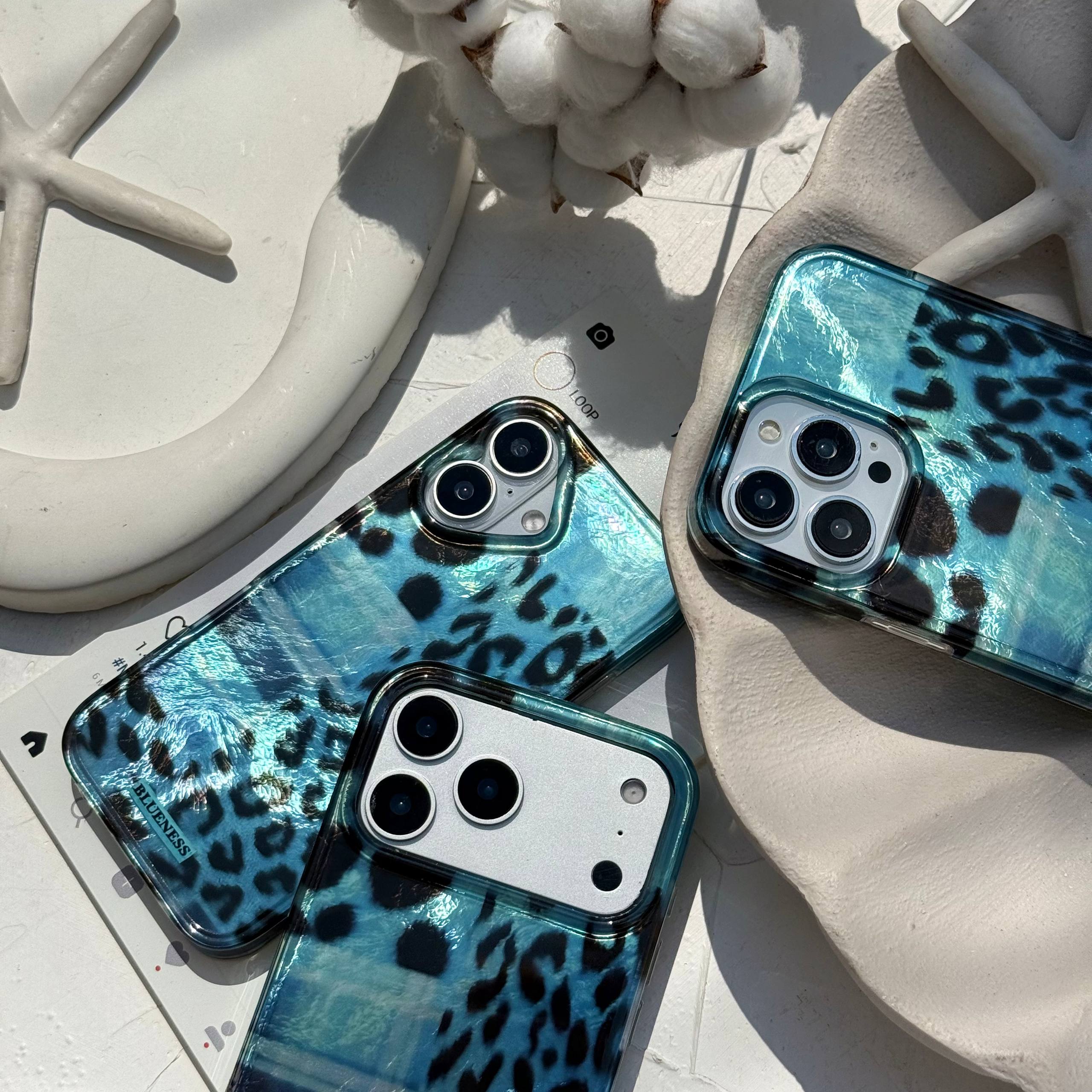 قاب گوشی آیفون پلنگی آبی فیروزه ای