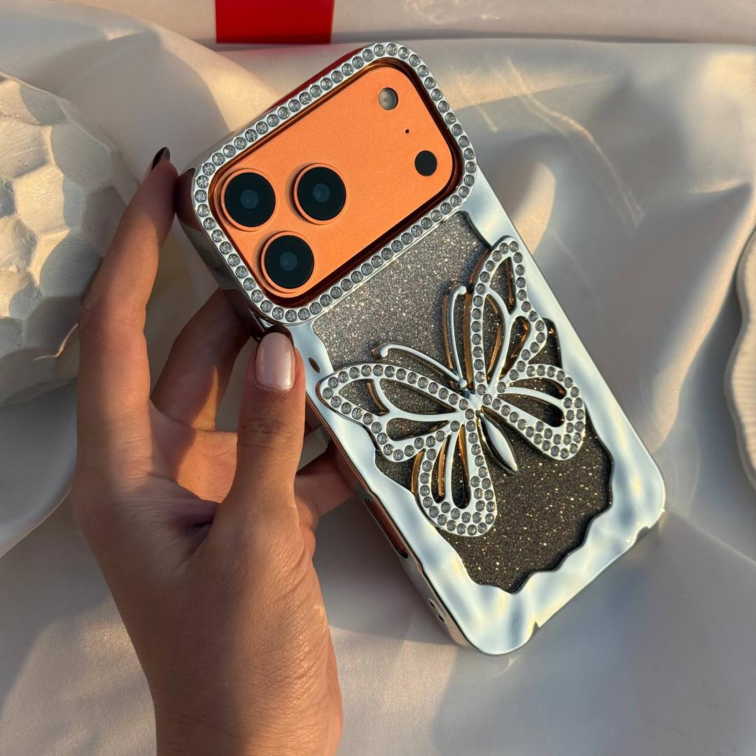 قاب گوشی ایفون پروانه نگین دار سه بعدی