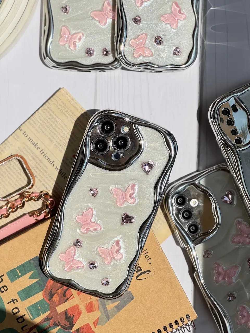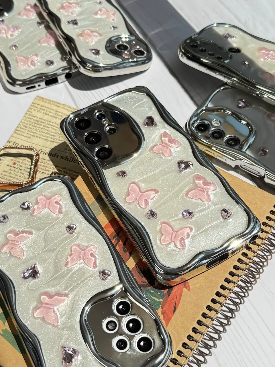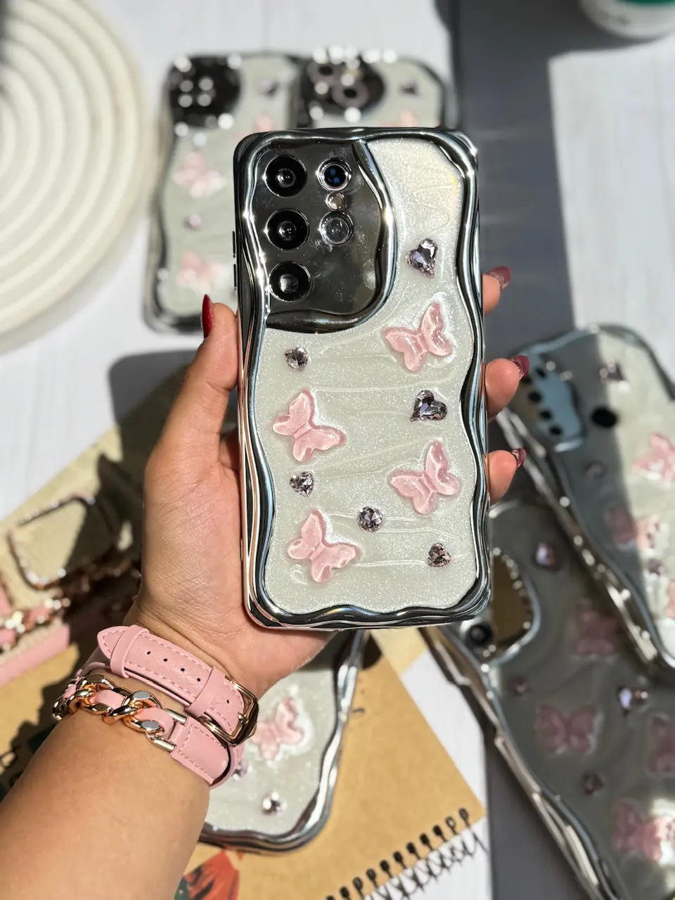 قاب کرومی پروانه و قلب صورتی آیفون و اندرویدی (کدC1825)