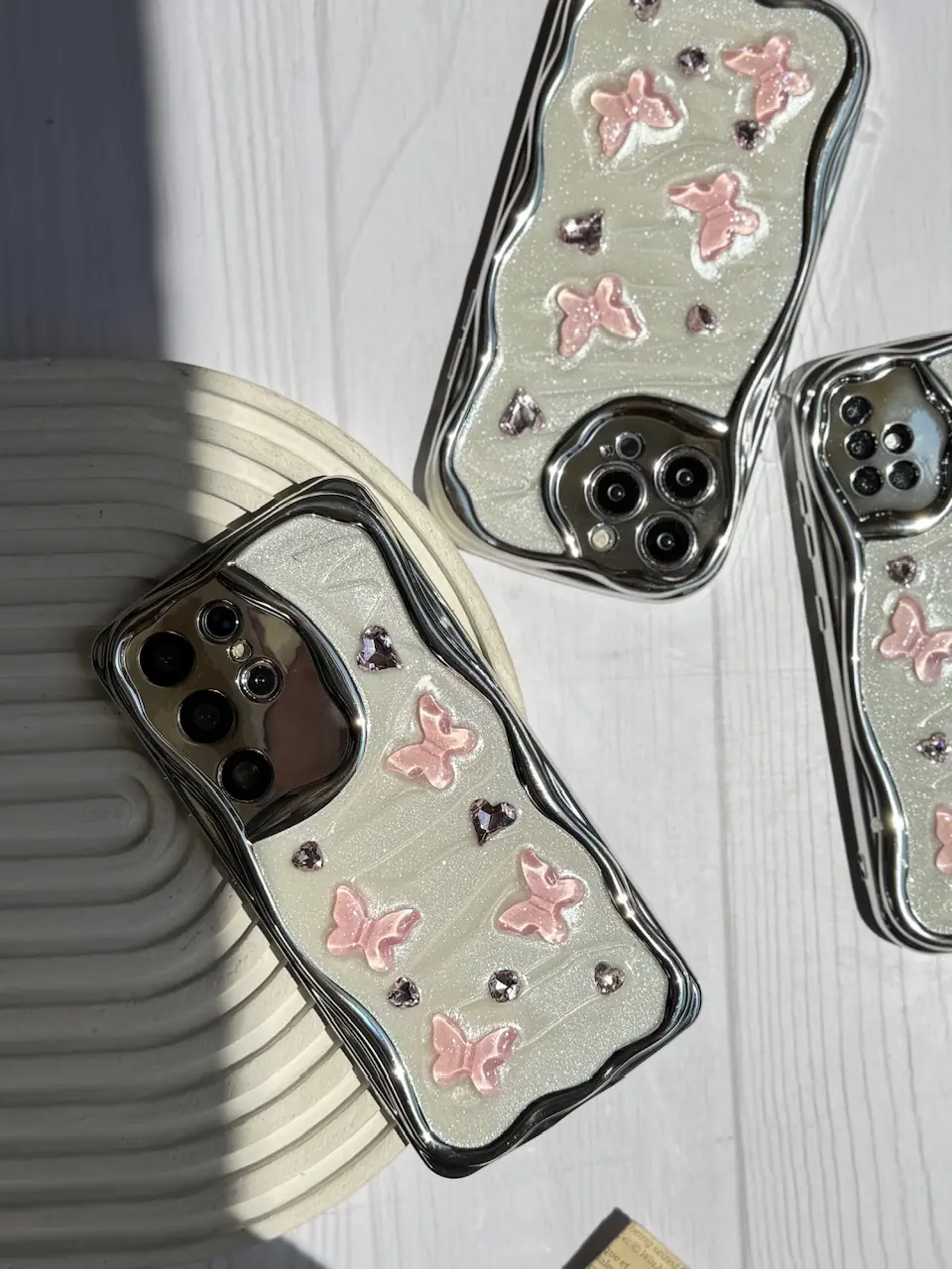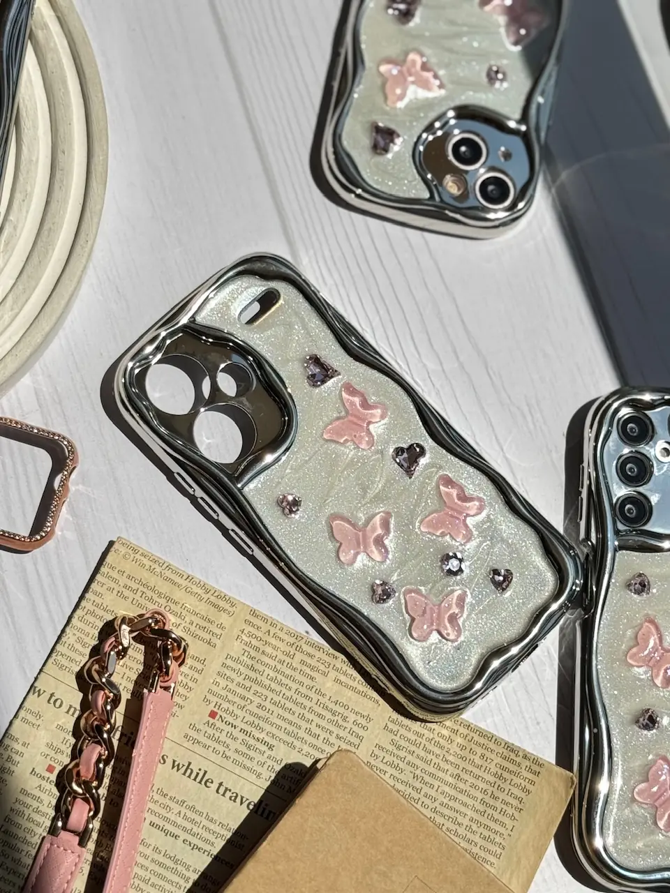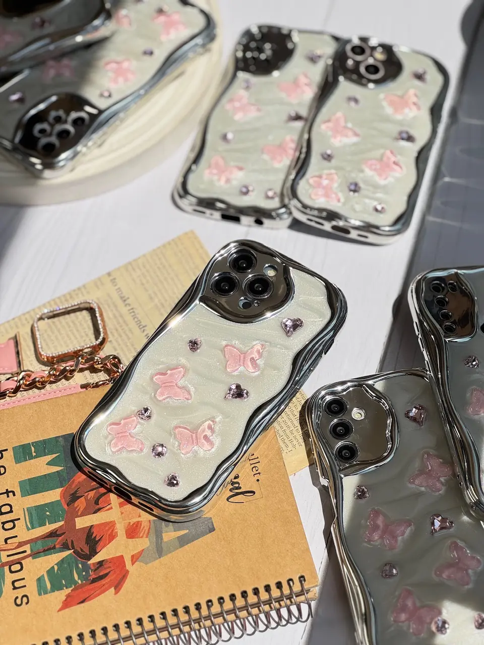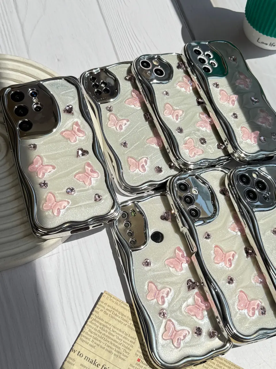 قاب کرومی پروانه و قلب صورتی آیفون و اندرویدی (کدC1825)