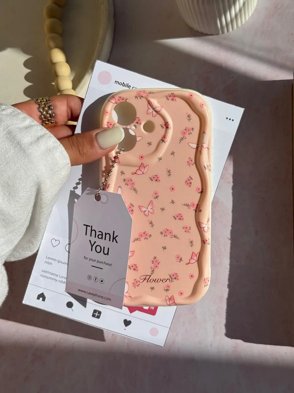 قاب Peachy Flowers & butterfly آیفون ، سامسونگ ، شیائومی (کدC2092)