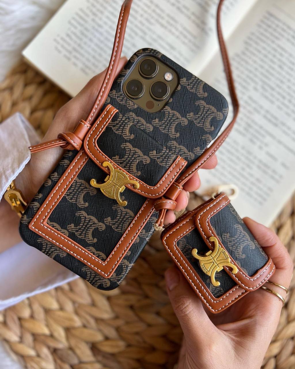 قاب موبایل آیفون کلین چرمی قفل فلزی بند چرمی بلند