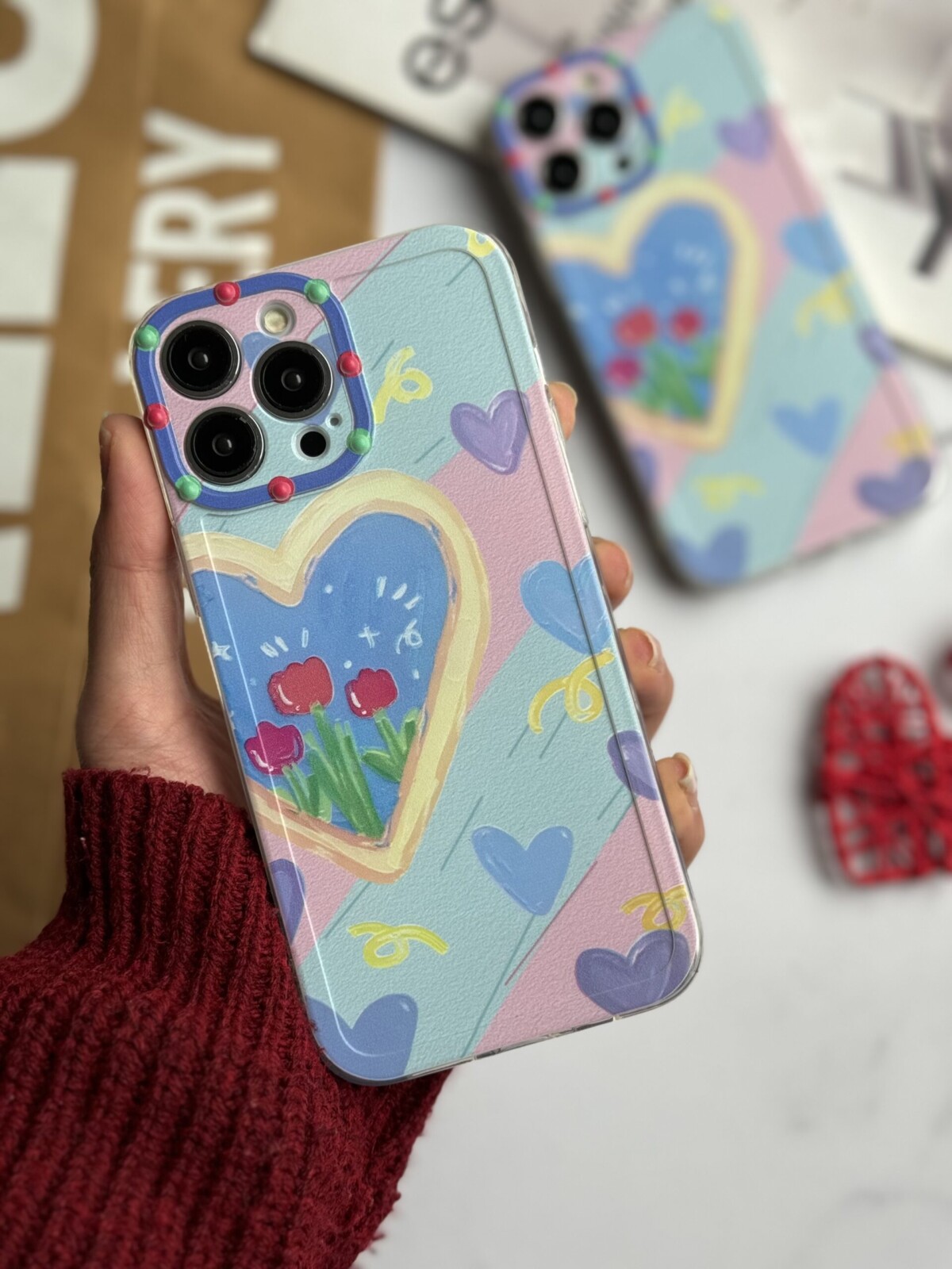 قاب موبایل آیفون پالت آبرنگی قلبی کستیفای